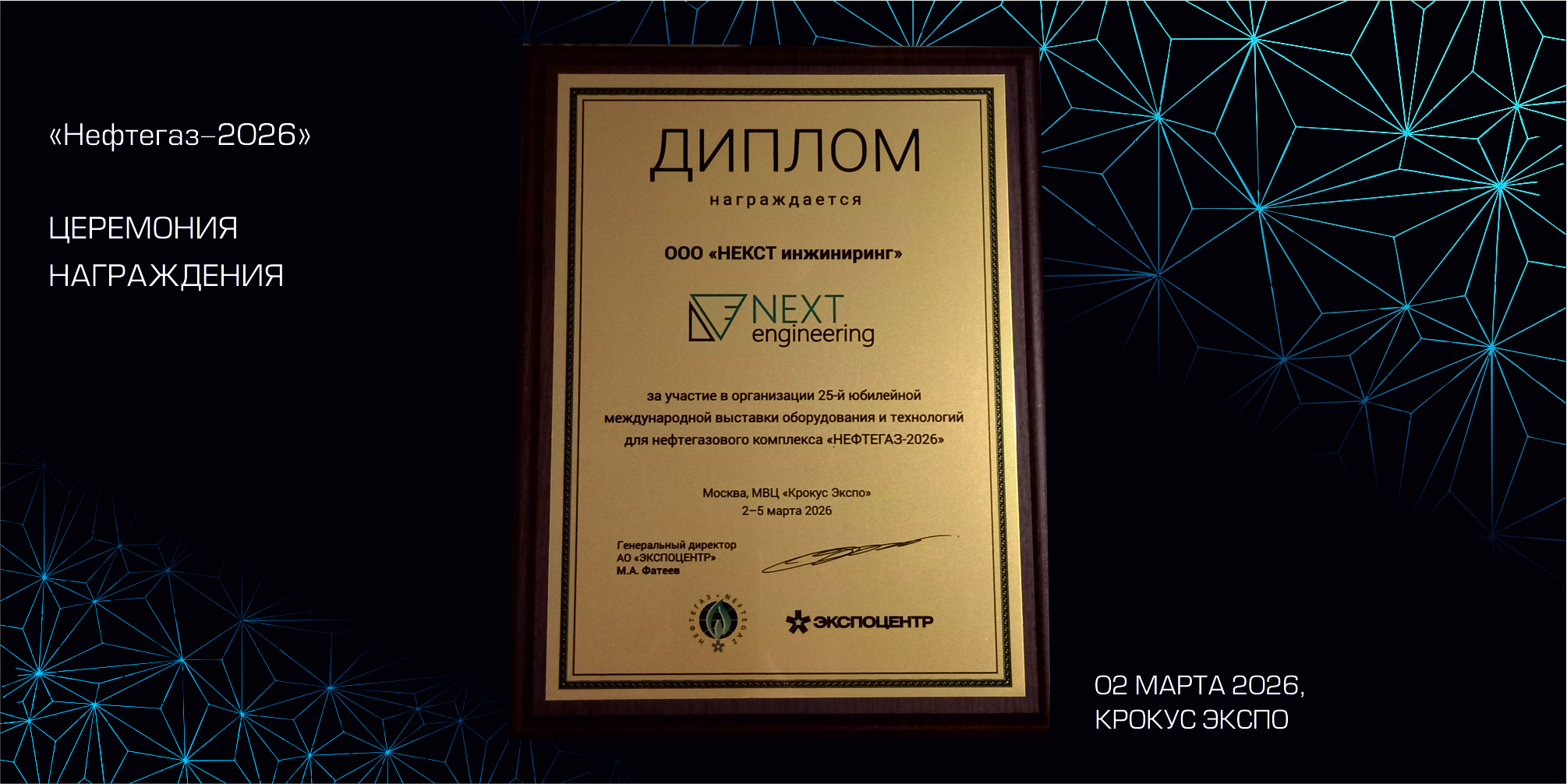 НЕКСТ инжиниринг награжден дипломом выставки НЕФТЕГАЗ-2026